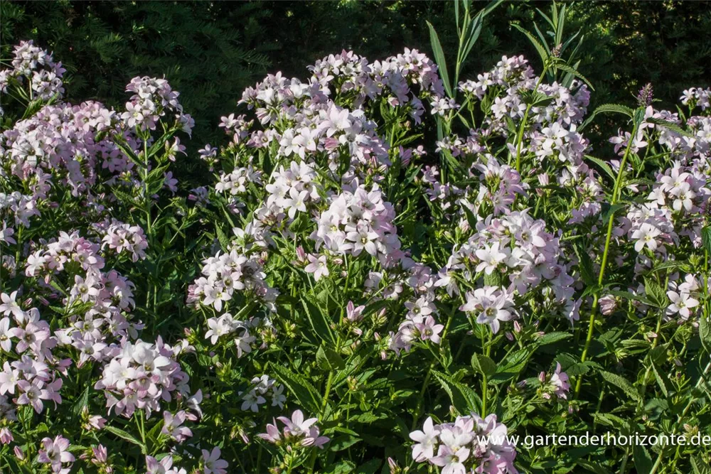 Die Garten-Dolden-Glockenblume 'Loddon Anne' setzt schöne Akzente gemeinsam mit: