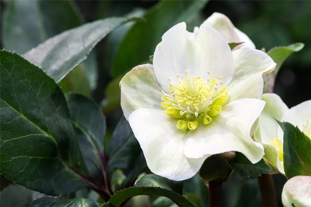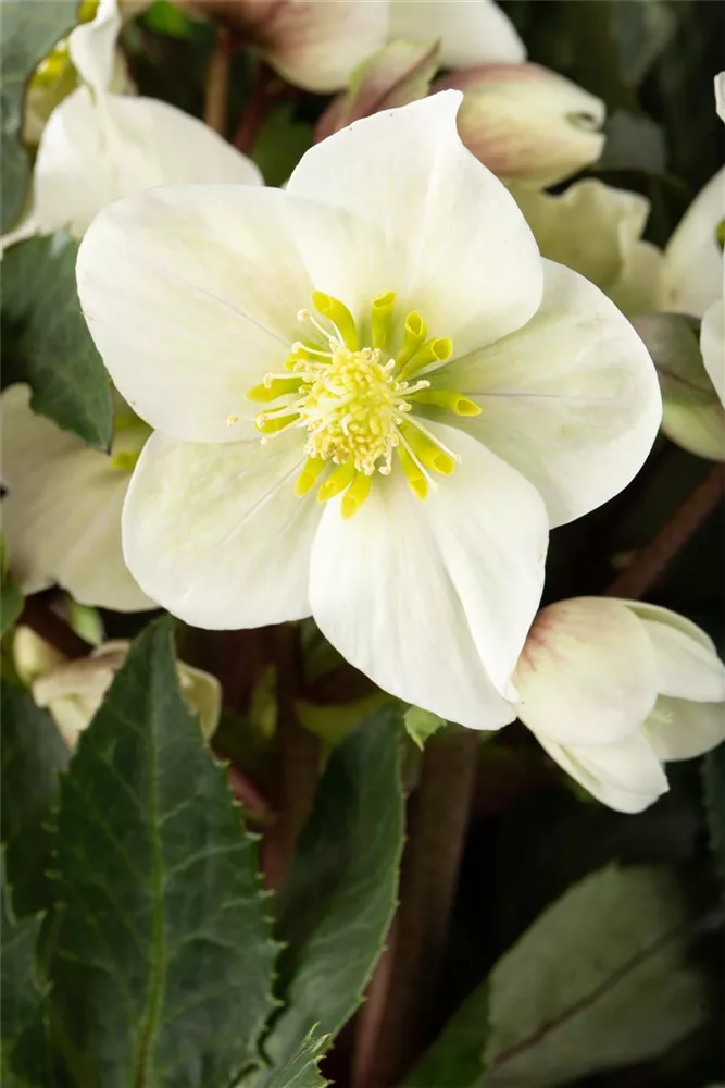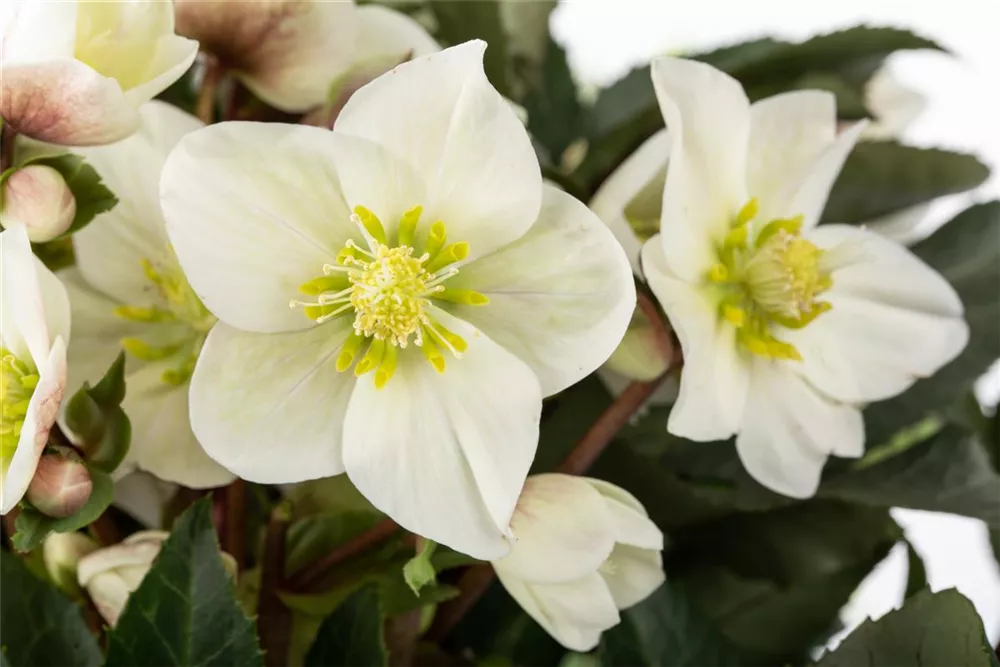 Helleborus x ericsmithii 'HGC Shooting Star'® bildet cremeweiße Blüten ab Dezember.