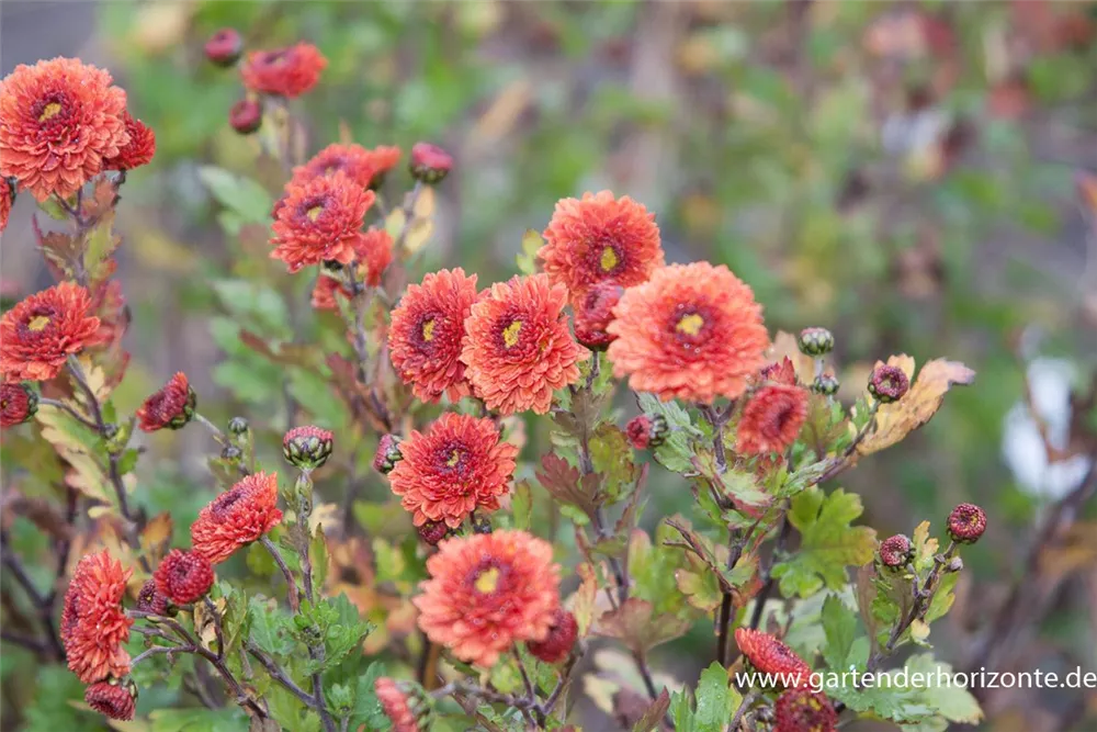 Die Winteraster (Chrysanthemum x grandiflorum) ist eine buschige wintergrüne Staude, die von September bis Oktober dunkelrote, körbchenartige Blüten bildet. An einem sonnigen bis halbschattigen, windgeschützten Standort mit durchlässigem, humosem, sandigem Boden erreicht sie gewöhnlich eine Höhe von ca. 1 m und wird ca. 80 cm breit. Die Winteraster ist gut frostverträglich.