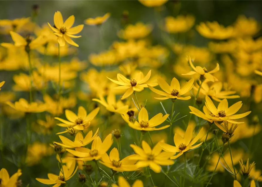 Coreopsis verticillata 'Zagreb' bildet strahlenförmige, gelbe Blüten ab Juni.