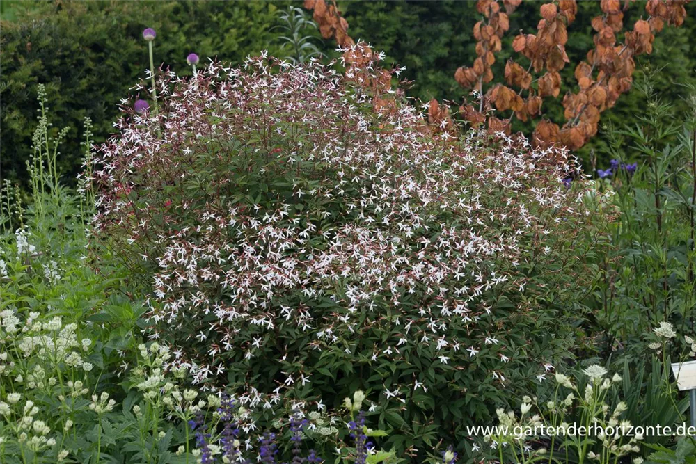 Diese Pflanze könnte in ihren Ansprüchen bzw. Aussehen der Dreiblattspiere ähnlich sein: Gaura lindheimeri (Garten-Prachtkerze).