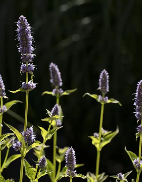 Agastache rugosa 'Little Adder' bildet lippenförmige, in Ähren angeordnete, violette Blüten ab Juni. Diese verströmen einen angenehmen Duft.