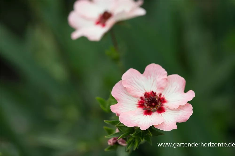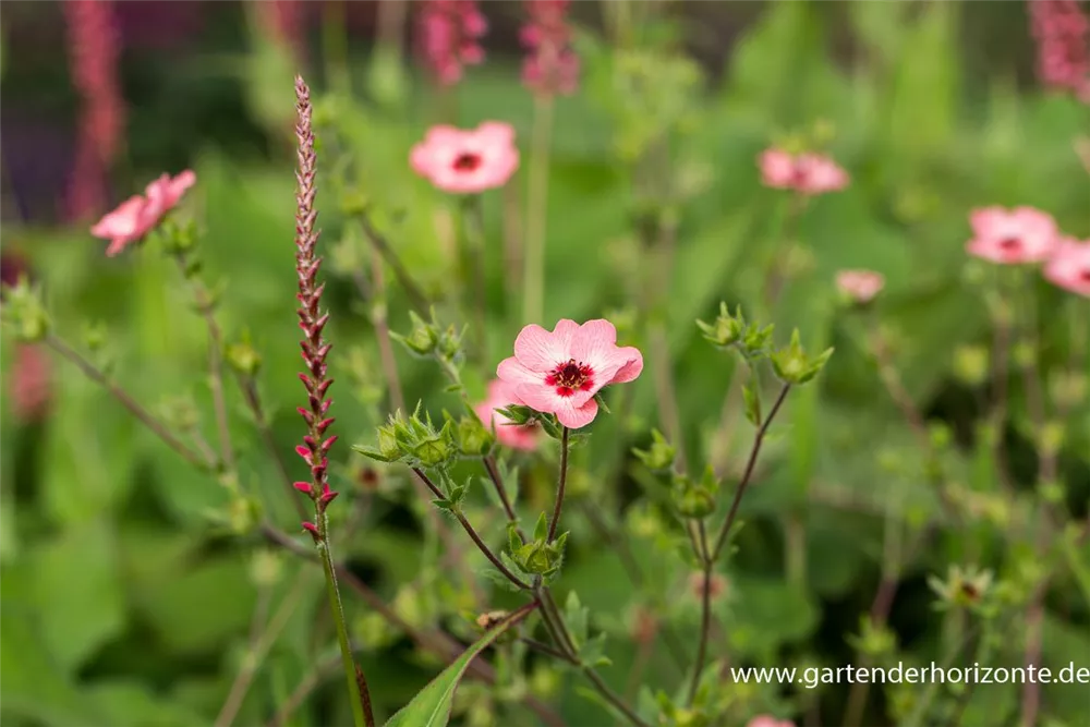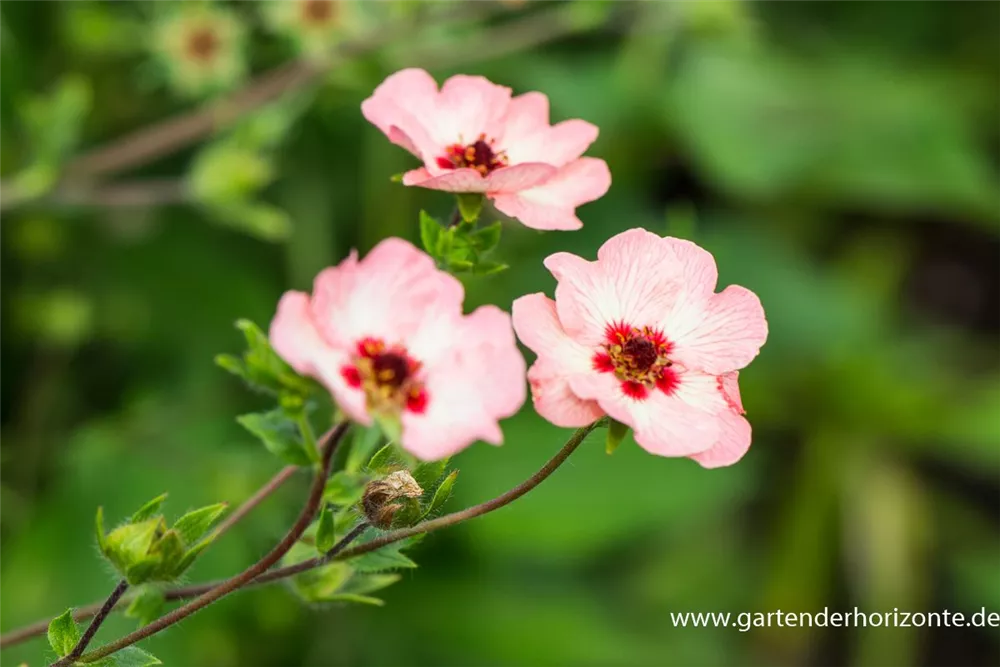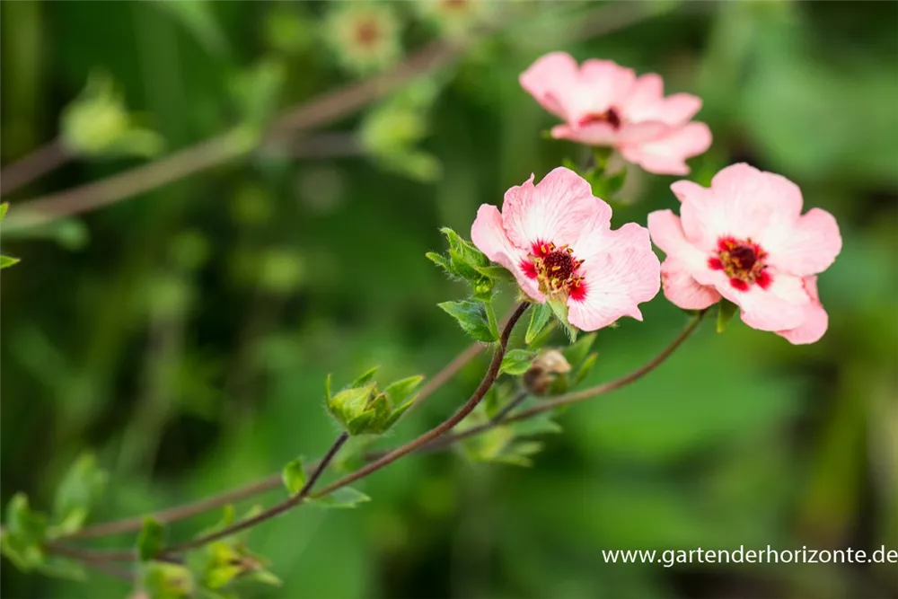 Das Garten-Fingerkraut (Potentilla hopwoodiana) eine buschige Gartenpflanze, die, je nach Sorte, schalenförmige Blüten in verschiedenen Farben hervorbringt. An einem sonnigen bis halbschattigen Standort mit durchlässigem, humosem, nährstoffreichem Boden erreicht es gewöhnlich eine Höhe von ca. 40 cm und wird ca. 40 cm breit.