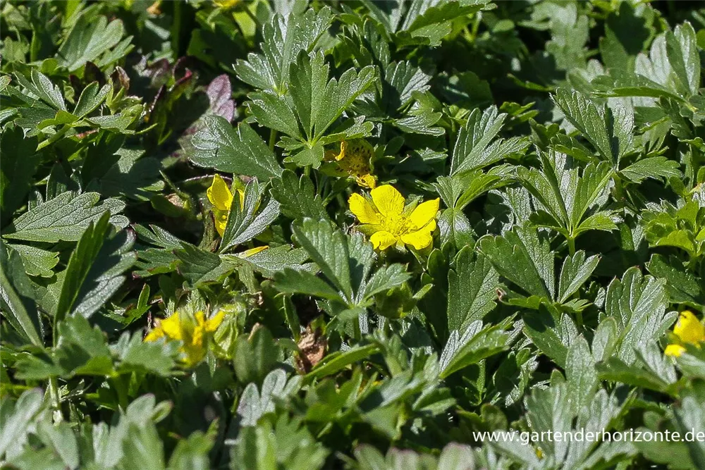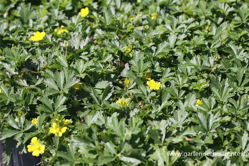 Das Frühlings-Fingerkraut (Potentilla neumanniana) ist eine teppichartige wintergrüne Staude, die von April bis Mai gelbe, schalenförmige Blüten bildet. Wiederholte Blüte kommt bei richtiger Pflege im August vor. An einem sonnigen Standort mit durchlässigem Boden erreicht es gewöhnlich eine Höhe von ca. 15 cm und wird ca. 25 cm breit. Das Frühlings-Fingerkraut ist gut frostverträglich.
