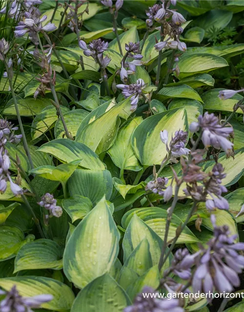 Hosta 'Dress Blues' bildet lilafarbene Blüten ab Juli.