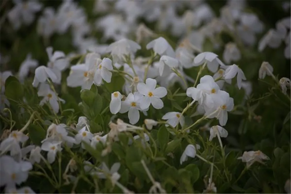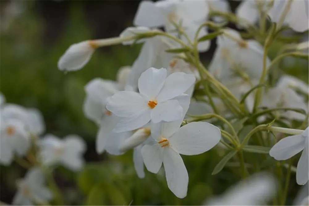 Phlox stolonifera 'Ariane' bildet in Dolden angeordnete, weiße Blüten ab April.