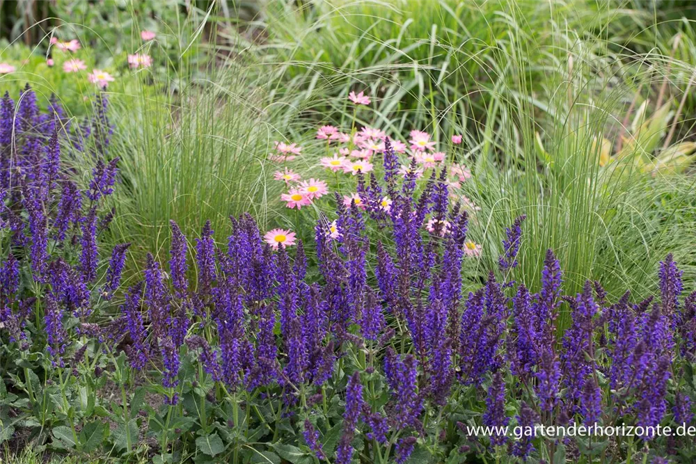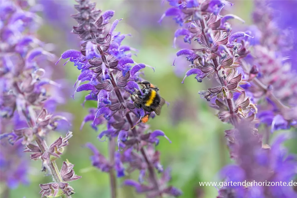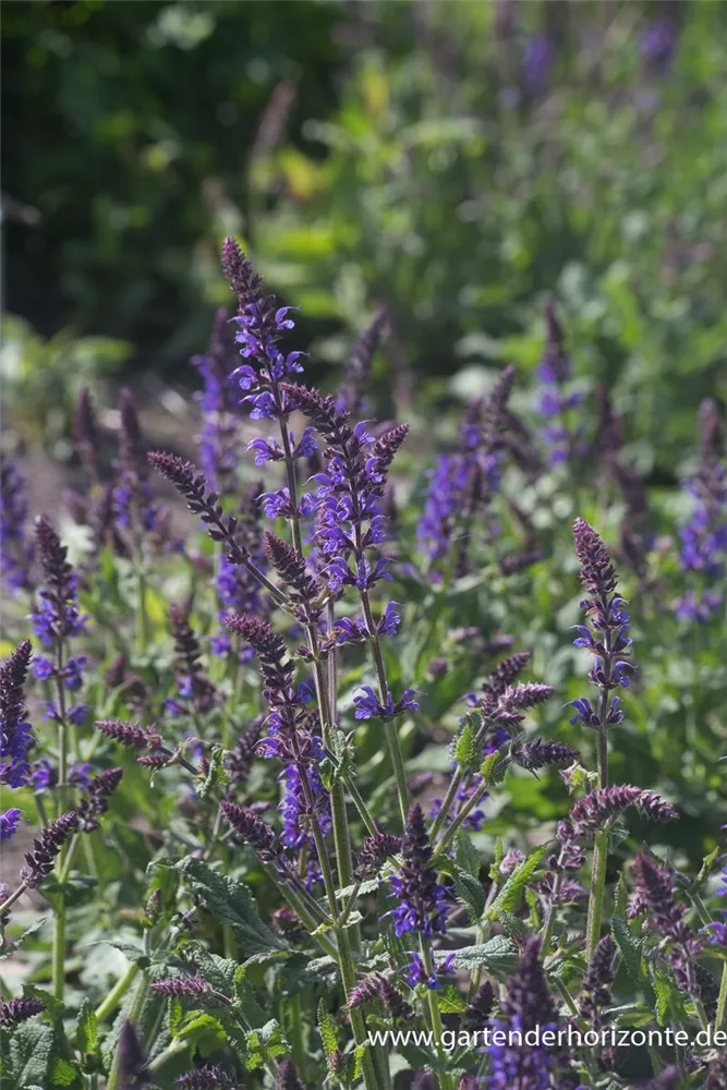 Garten-Blüten-Salbei 'Mainacht' ist auch unter diesem Namen bekannt: Sommer-Salbei oder Hain-Salbei