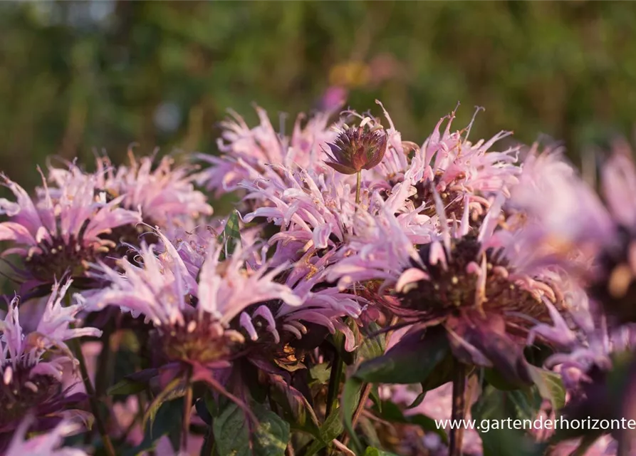 Die Garten-Indianernessel 'Beauty of Cobham' (Monarda fistulosa) ist eine aufrechte, verzweigte Staude, die von Juli bis September rosafarbene, violette, lippenförmige, in Quirlen angeordnete Blüten bildet. An einem sonnigen Standort mit durchlässigem, nährstoffreichem Boden erreicht sie gewöhnlich eine Höhe von ca. 1 m und wird ca. 60 cm breit. Die Garten-Indianernessel 'Beauty of Cobham' ist gut frostverträglich.