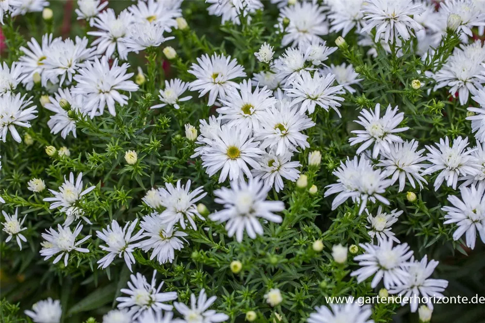 Aster dumosus 'Kristina' bildet körbchenartige, weiße Blüten ab September. Diese verströmen einen angenehmen Duft.