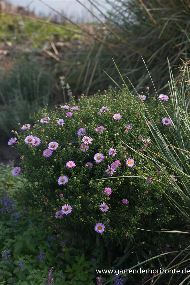 Die Garten-Kissen-Aster 'Tina' setzt schöne Akzente gemeinsam mit: