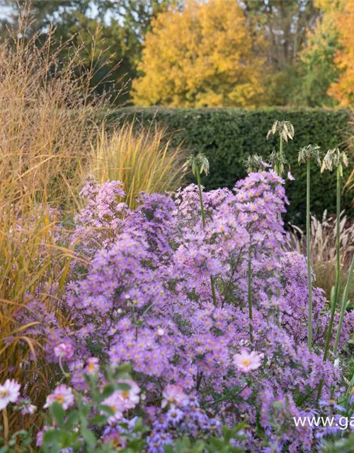 Die Garten-Myrten-Aster 'Esther' setzt schöne Akzente gemeinsam mit: