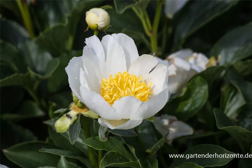 Die Garten-Pfingstrose 'Jan van Leeuwen' setzt schöne Akzente gemeinsam mit: