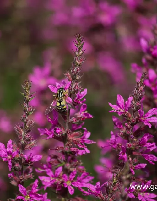 Der Garten-Ruten-Weiderich 'Dropmore Purple' (Lythrum virgatum) ist eine aufrechte, horstbildende Staude, die von Juni bis August purpurrote Blüten bildet. An einem sonnigen bis halbschattigen Standort mit durchlässigem, nährstoffreichem Boden erreicht er gewöhnlich eine Höhe von ca. 80 cm und wird ca. 40 cm breit. Der Garten-Ruten-Weiderich 'Dropmore Purple' ist gut frostverträglich.