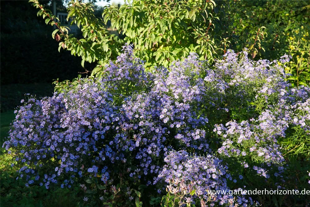 Die Garten-Schleier-Aster 'Ideal' (Aster cordifolius) ist eine aufrechte, horstbildende Staude, die von September bis Oktober lilafarbene, körbchenartige, in Rispen angeordnete Blüten mit einem angenehmen Duft bildet. An einem sonnigen Standort mit durchlässigem, nährstoffreichem Boden erreicht sie gewöhnlich eine Höhe von ca. 1,2 m und wird ca. 60 cm breit. Die Garten-Schleier-Aster 'Ideal' ist gut frostverträglich.