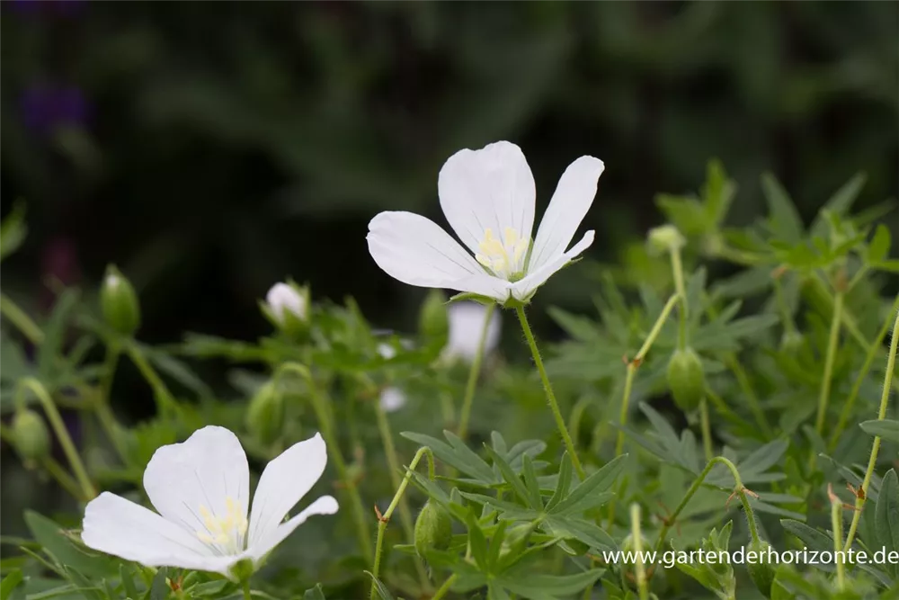 Geranium sanguineum 'Album' bildet schalenförmige, weiße Blüten ab Mai. Bei richtiger Pflege Nachblüte im September.
