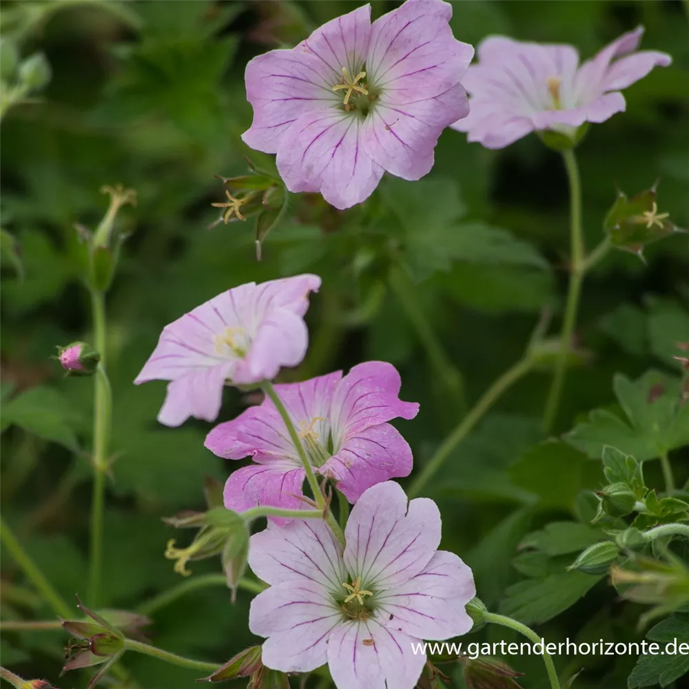 Der Garten-Storchschnabel (Geranium) An einem sonnigen bis halbschattigen Standort erreicht er gewöhnlich eine Höhe von ca. 60 cm. An den Boden stellt der Garten-Storchschnabel keine besonderen Ansprüche.