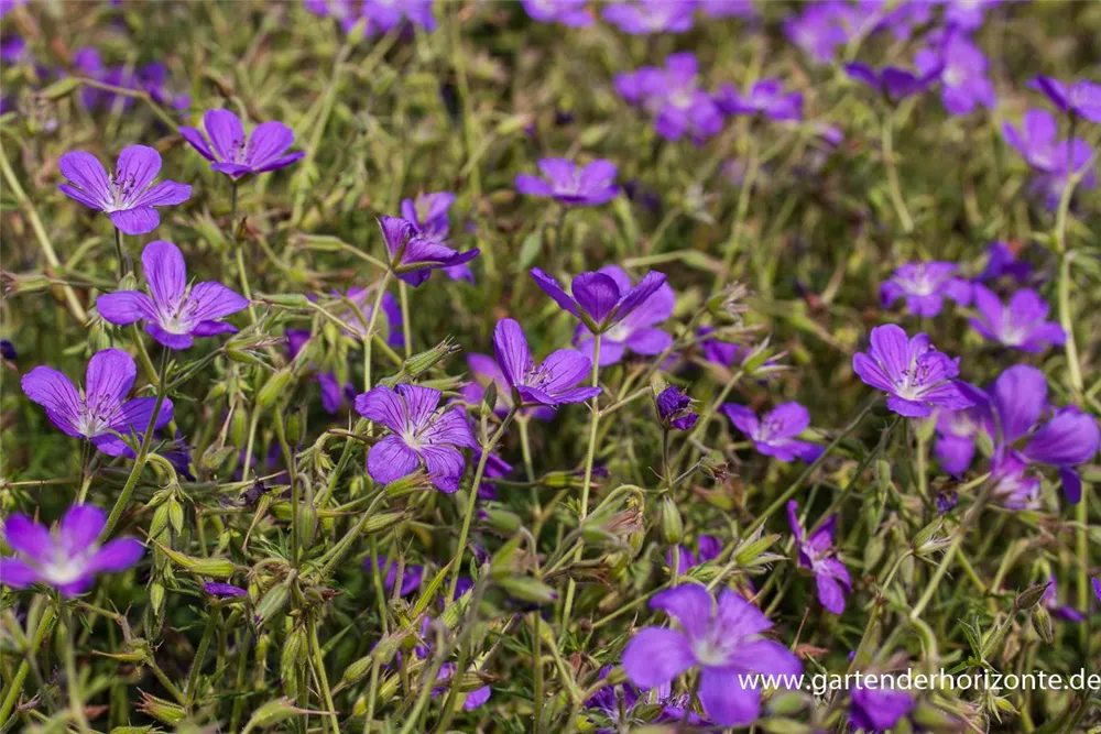 Geranium collinum 'Nimbus' bildet schalenförmige, blauviolette Blüten ab Juni.