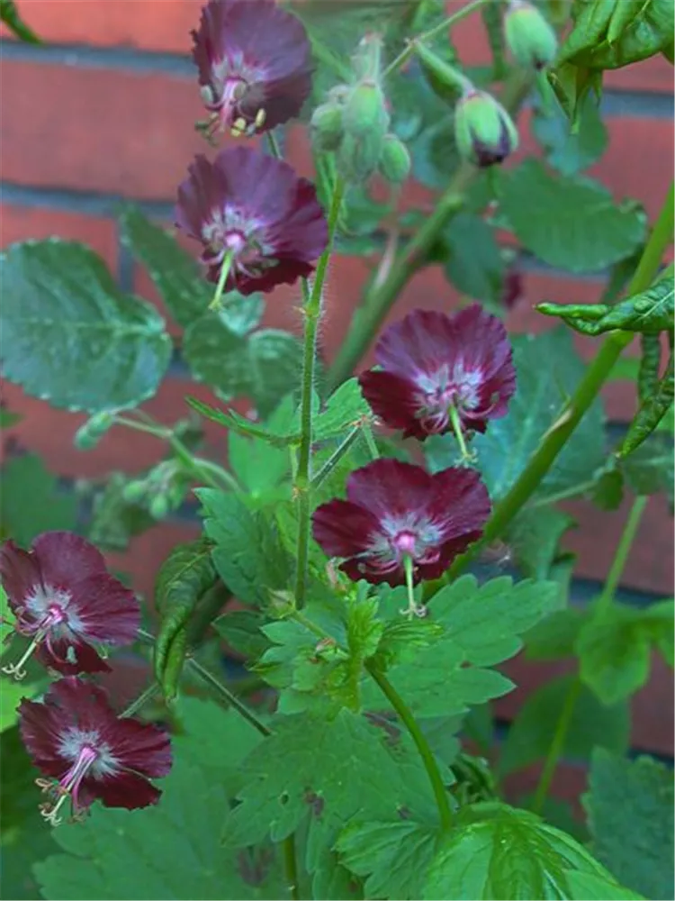 Der Braunblütige Storchschnabel (Geranium phaeum) ist eine aufrechte, lockere Staude mit dekorativen, rundlichen, dunkelgrünen Blättern. An einem sonnigen bis halbschattigen Standort mit durchlässigem, humosem Boden erreicht er gewöhnlich eine Höhe von ca. 70 cm und wird ca. 40 cm breit. Der Braunblütige Storchschnabel ist gut frostverträglich.