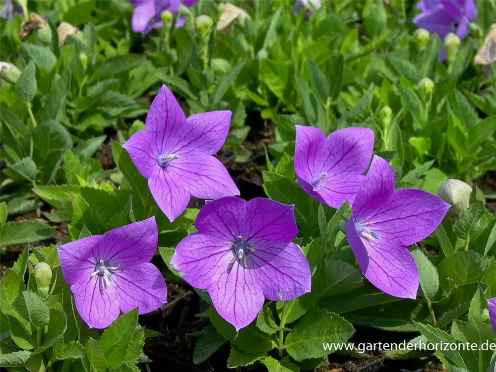 Platycodon grandiflorus 'Astra', blau bildet glockenförmige, blaue Blüten ab Juli.