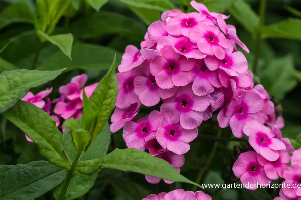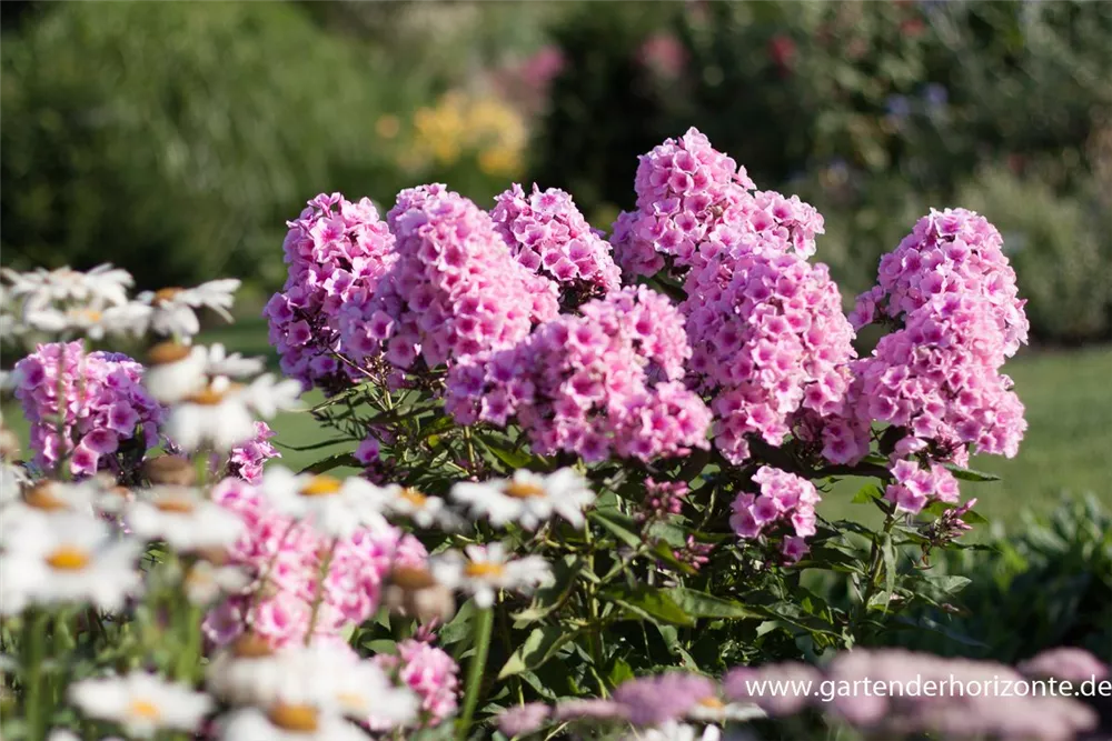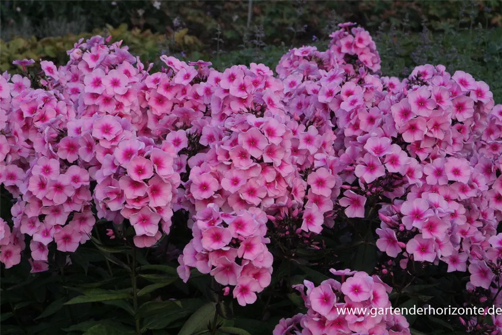 Phlox paniculata 'Baby Face' bildet in Dolden angeordnete, rosafarbene Blüten ab Juni. Diese verströmen einen leichten Duft.