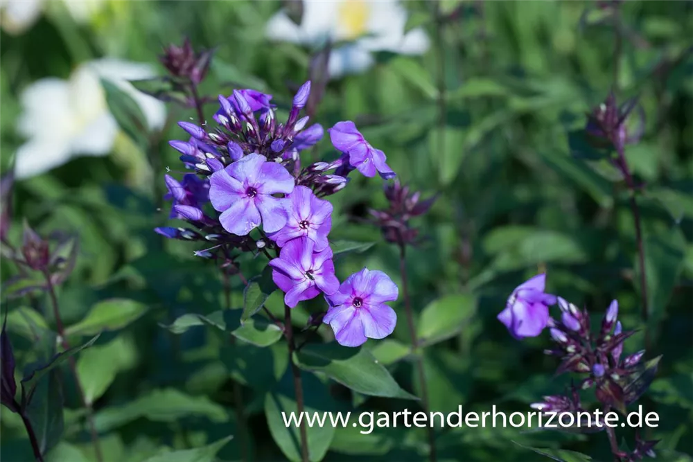 Phlox paniculata 'Blue Boy' bildet in Dolden angeordnete, blauviolette Blüten ab Juli. Diese verströmen einen schwachen Duft.