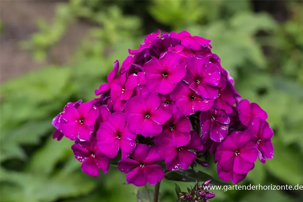 Phlox paniculata 'Düsterlohe' bildet in Dolden angeordnete, violette Blüten ab Juli. Diese verströmen einen leichten Duft.
