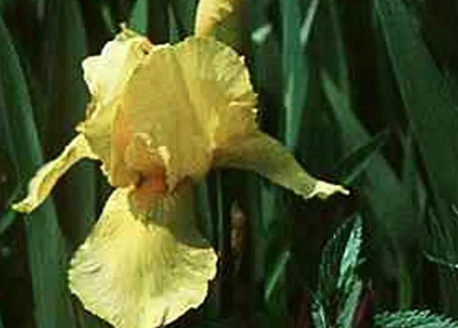 Die sommergrünen Blätter der Hohe Garten-Schwertlilie 'Goldfackel' sind dunkelgrün, lanzettlich.