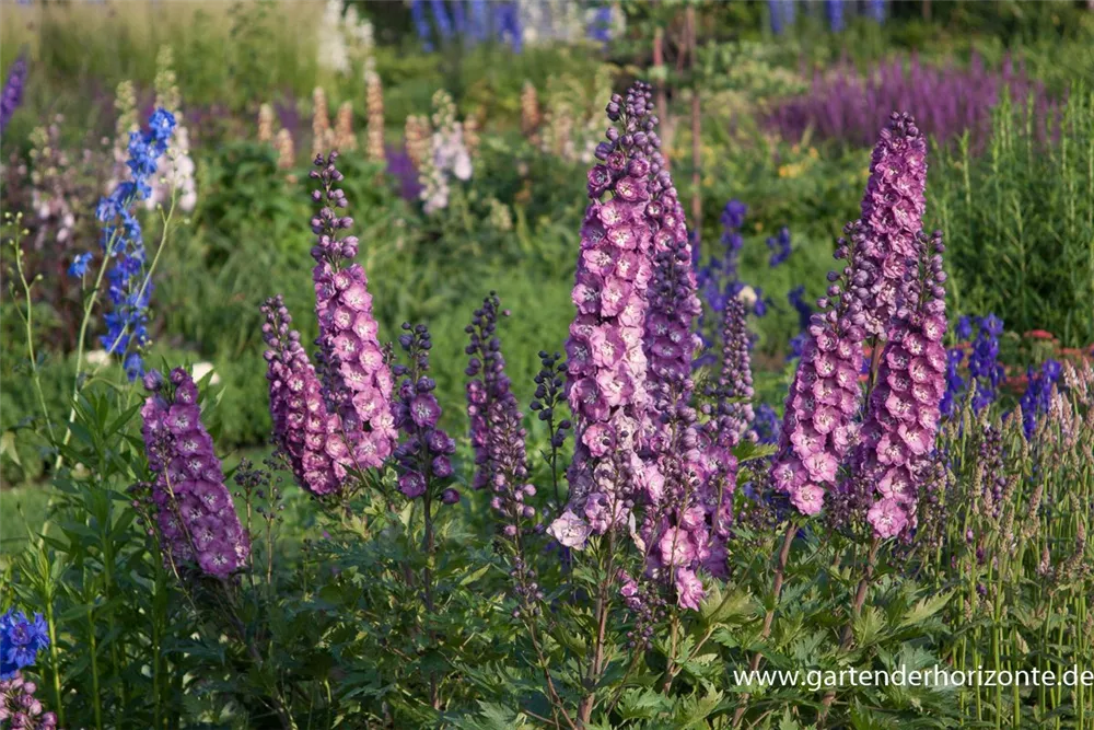 Der Hohe Garten-Rittersporn 'Pink Power' setzt schöne Akzente gemeinsam mit: