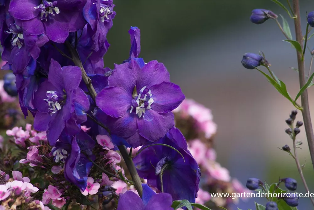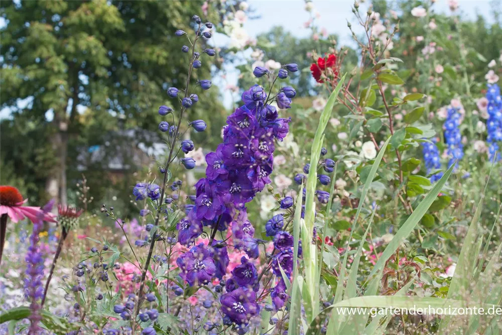 Der Hohe Garten-Rittersporn 'Christel' setzt schöne Akzente gemeinsam mit: