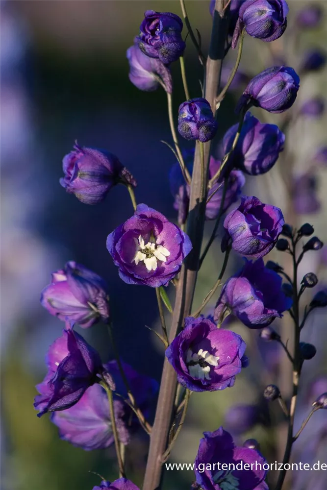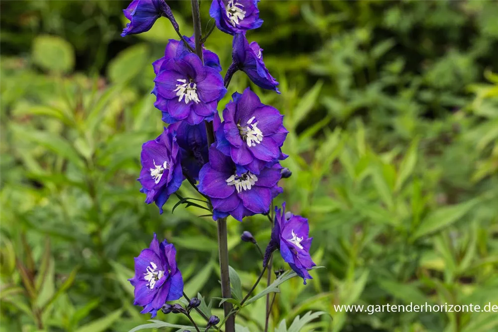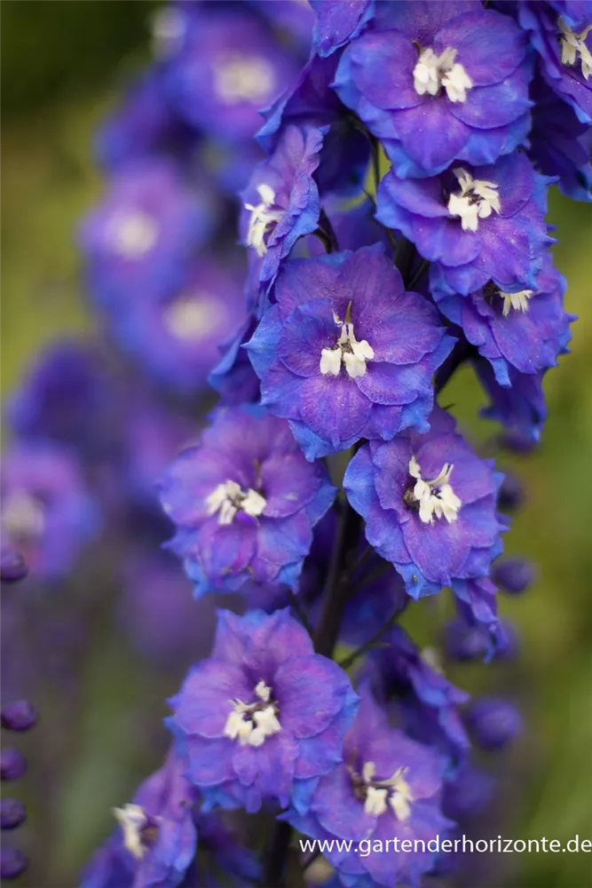 Delphinium x elatum 'Delphi´s Power'® bildet schalenförmige, in Rispen angeordnete, blauviolette Blüten ab Juni. Bei richtiger Pflege Nachblüte von September bis Oktober.