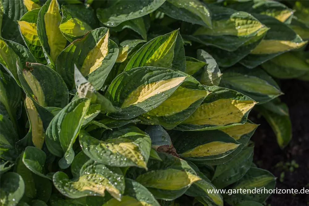 Die Funkie (Hosta) ist eine horstbildende Staude mit dekorativen, gelb-grünen Blättern. An einem halbschattigen Standort mit durchlässigem, humosem Boden erreicht sie gewöhnlich eine Höhe von ca. 50 cm. Die Funkie ist gut frostverträglich.