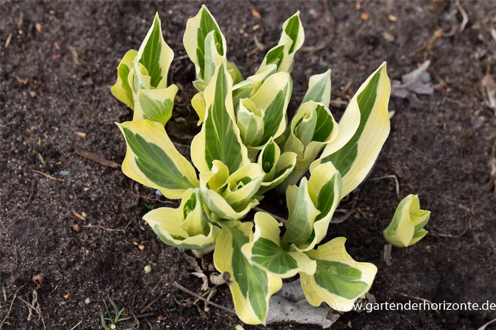 Die Funkie (Hosta) ist eine horstbildende Staude mit dekorativen, gelb-grünen Blättern. An einem halbschattigen Standort mit durchlässigem, humosem Boden erreicht sie gewöhnlich eine Höhe von ca. 50 cm. Die Funkie ist gut frostverträglich.