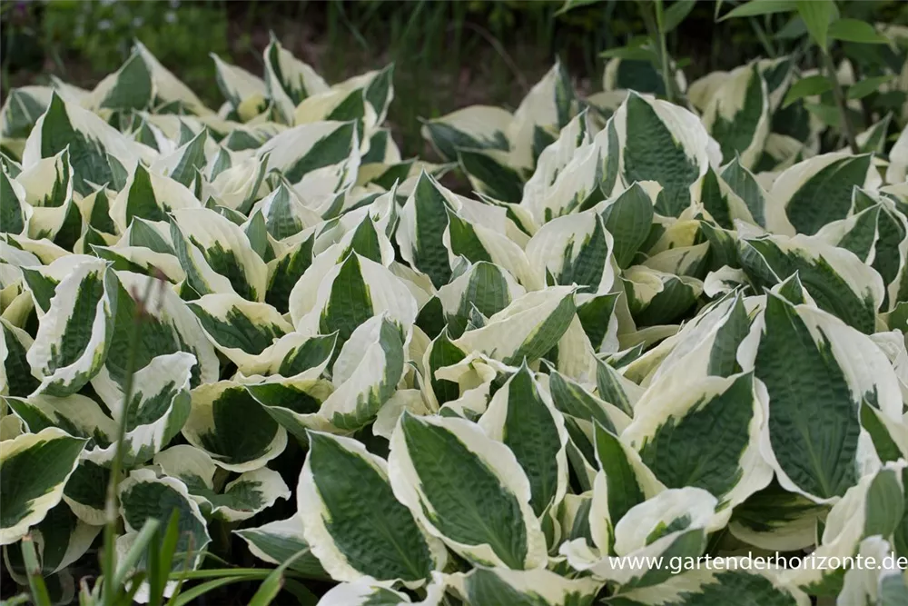 Die Graublättrige Goldrand-Garten-Funkie 'Patriot' (Hosta x fortunei) ist eine horstbildende, aufrechte, buschige, breite Staude mit dekorativen, lanzettlichen, herzförmigen, dunkelgrünen Blättern. An einem halbschattigen Standort mit durchlässigem, humosem Boden erreicht sie gewöhnlich eine Höhe von ca. 50 cm und wird ca. 50 cm breit. Die Graublättrige Goldrand-Garten-Funkie 'Patriot' ist gut frostverträglich.