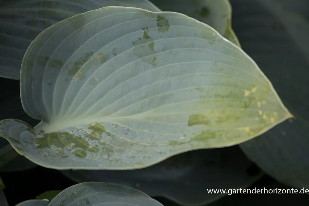 Hoher Blattschmuckwert. Die sommergrünen Blätter der Graublaue Garten-Funkie 'Halcyon' sind blau-grau, herzförmig, grundständig. Graublaue Garten-Funkie 'Halcyon' zeigt sich leuchtend gelb im Herbst.