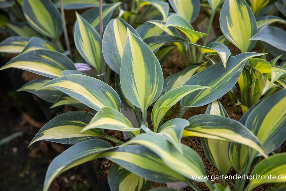 Synonyme (botanisch): Hosta x tardiana 'June'.