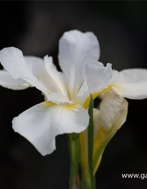 Die Bartlose Garten-Schwertlilie 'White Swirl' (Iris sibirica) ist mit ihren mittelgrünen Blättern eine ausgesprochen dekorative Wasserpflanze, die für solche Einsatzbereiche wie Schnitt, Bauerngarten, Teichrand, Balkon/Terrasse, Bachlauf und Gehölzrand besonders gut geeignet ist. Weiße Blüten erscheinen von Juni bis Juli. Sie bevorzugt humosen Boden in sonniger bis halbschattiger Lage. Die Bartlose Garten-Schwertlilie 'White Swirl' ist gut frostverträglich. Die aufrechte, rhizombildende Staude erreicht gewöhnlich eine Höhe von ca. 1,2 m.