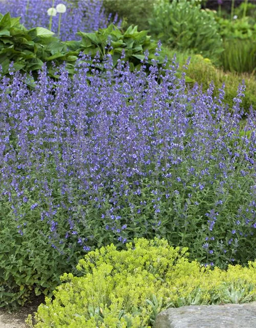 Nepeta x faassenii 'Purrsian Blue' bildet lippenförmige, blaue Blüten ab Mai.