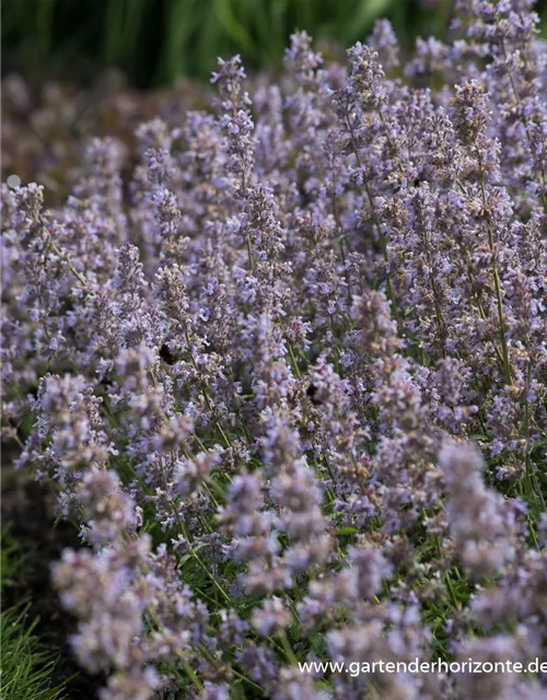 Nepeta x faassenii 'Gletschereis' bildet lippenförmige, silberblaue Blüten ab Mai. Bei richtiger Pflege Nachblüte im September.
