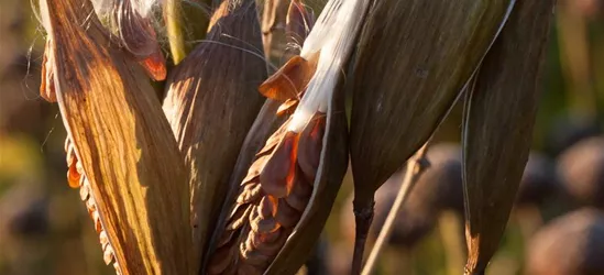 Besonders dekorativ sind die grüngelben Früchte von Asclepias tuberosa. Diese erscheinen ab September.