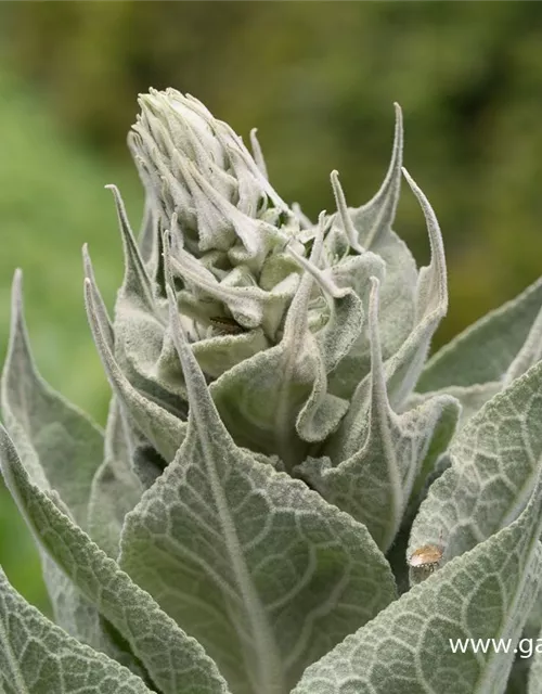 Die wintergrünen Blätter der Garten-Königskerze 'Wega' sind dunkelgrün, breit lanzettlich.