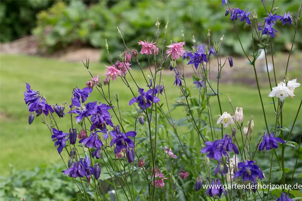 Je nach Sorte, bildet Aquilegia vulgaris Blüten in verschiedenen Farben.