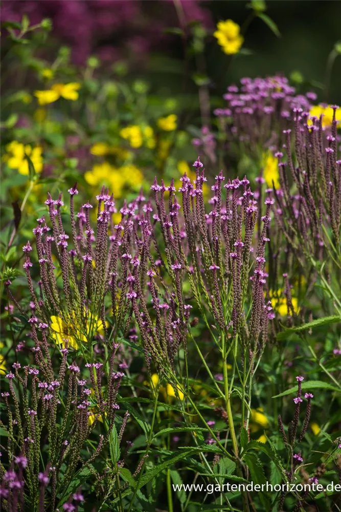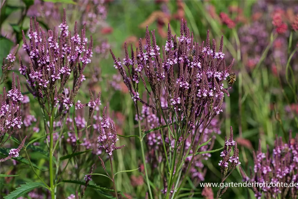 Verbena hastata 'Pink Spires' kann eine Höhe von 1 - 1,2 m und eine Breite von 50 - 60 cm erreichen.
