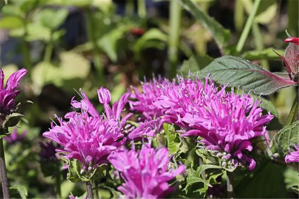 Monarda fistulosa 'Petit Delight' bildet lippenförmige, in Quirlen angeordnete, pinke Blüten ab Juli.
