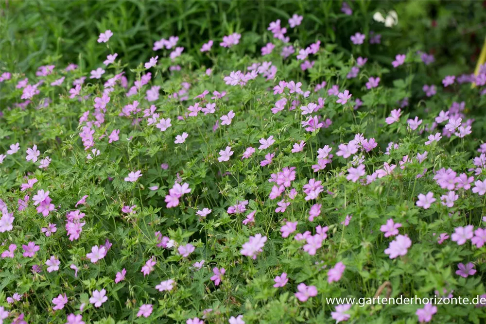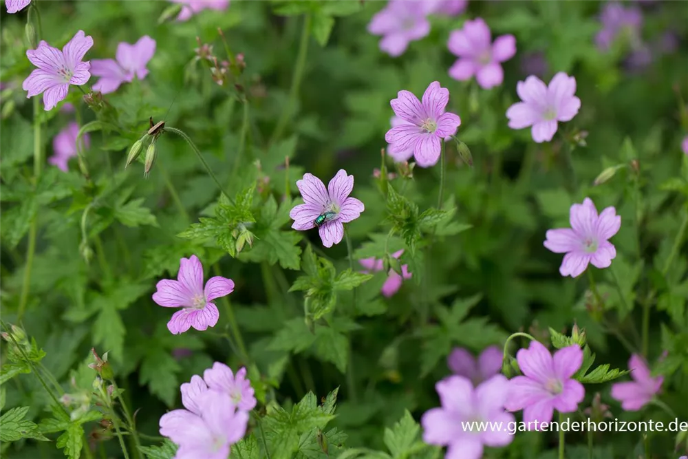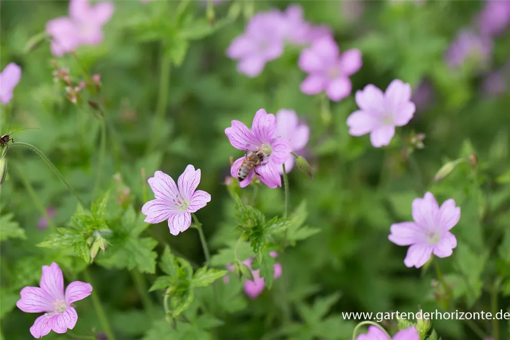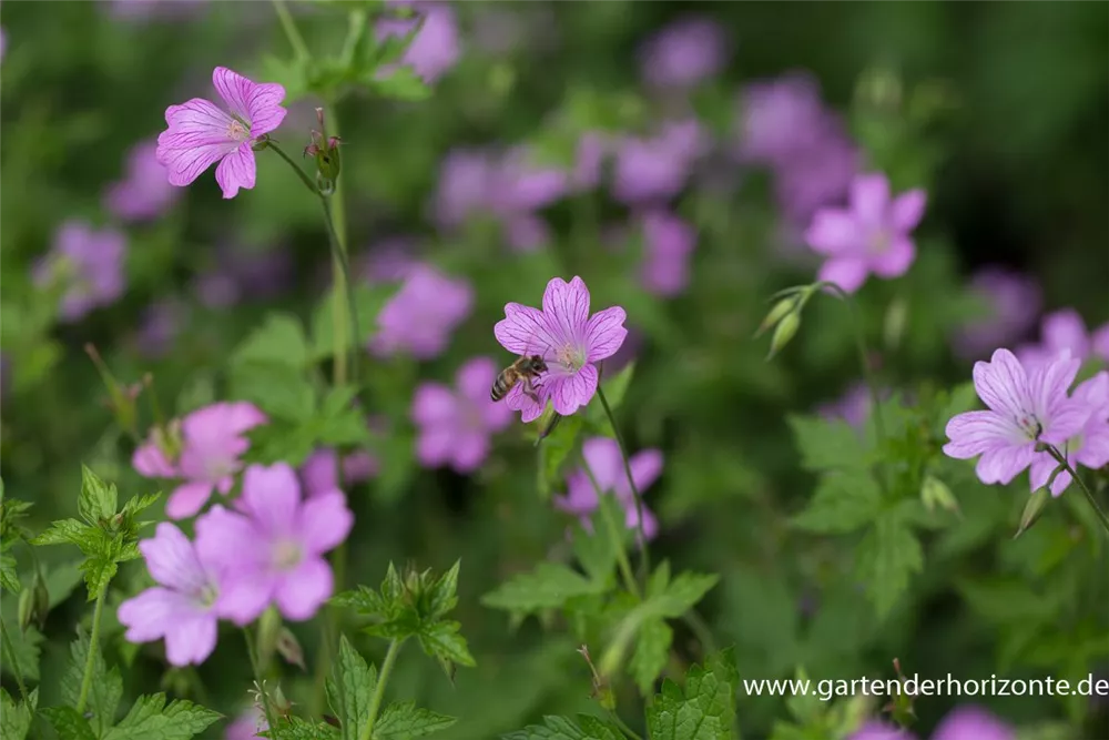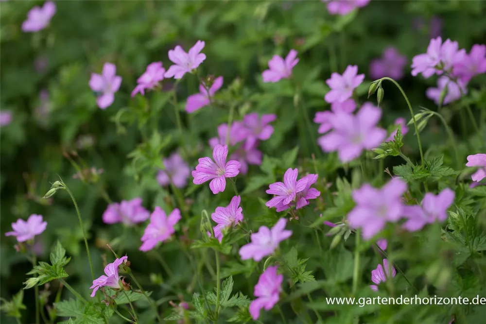 Geranium x oxonianum 'Lady Moore' bildet magentafarbene Blüten ab Juni. Bei richtiger Pflege Nachblüte im September.