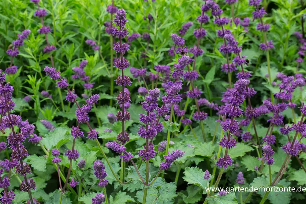 Salvia verticillata 'Purple Rain' bildet lippenförmige, purpurviolette Blüten ab Juli. Bei richtiger Pflege Nachblüte im September.