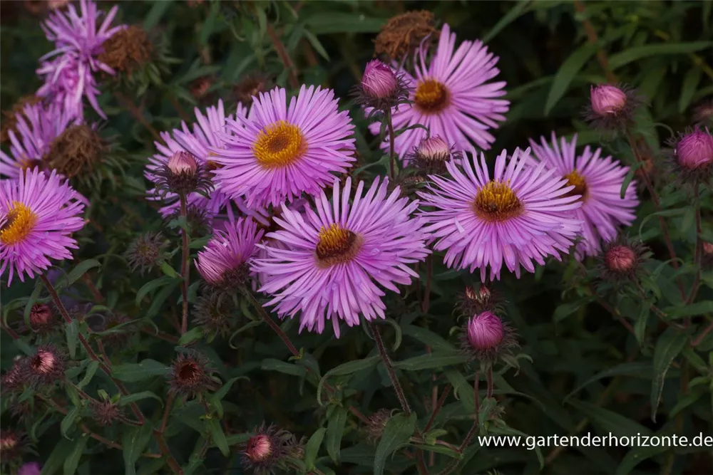 Aster novae-angliae 'Barr´s Pink' bildet körbchenartige, pinke Blüten ab September. Diese verströmen einen angenehmen Duft.