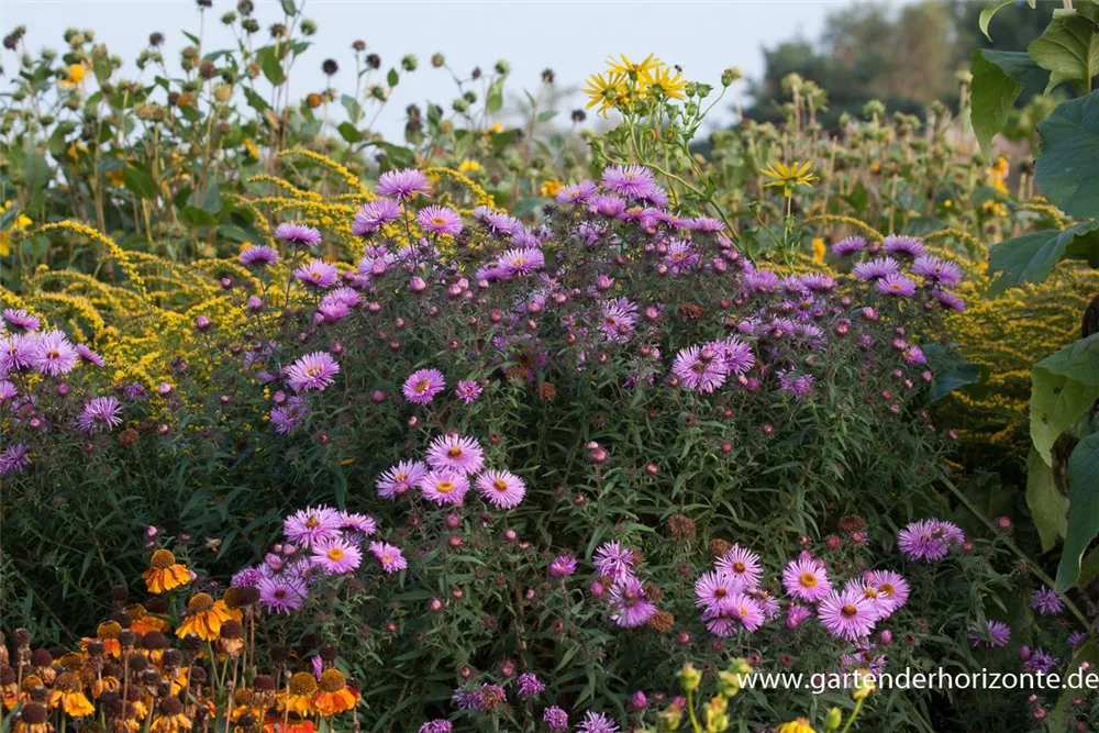 Die Garten-Raublatt-Aster 'Barr´s Pink' setzt schöne Akzente gemeinsam mit: