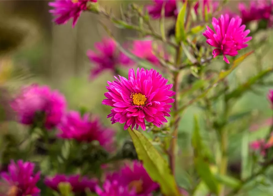 Aster novae-angliae 'Andenken an Paul Gerber' bildet körbchenartige, magentafarbene Blüten ab September. Diese verströmen einen angenehmen Duft.