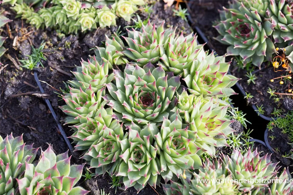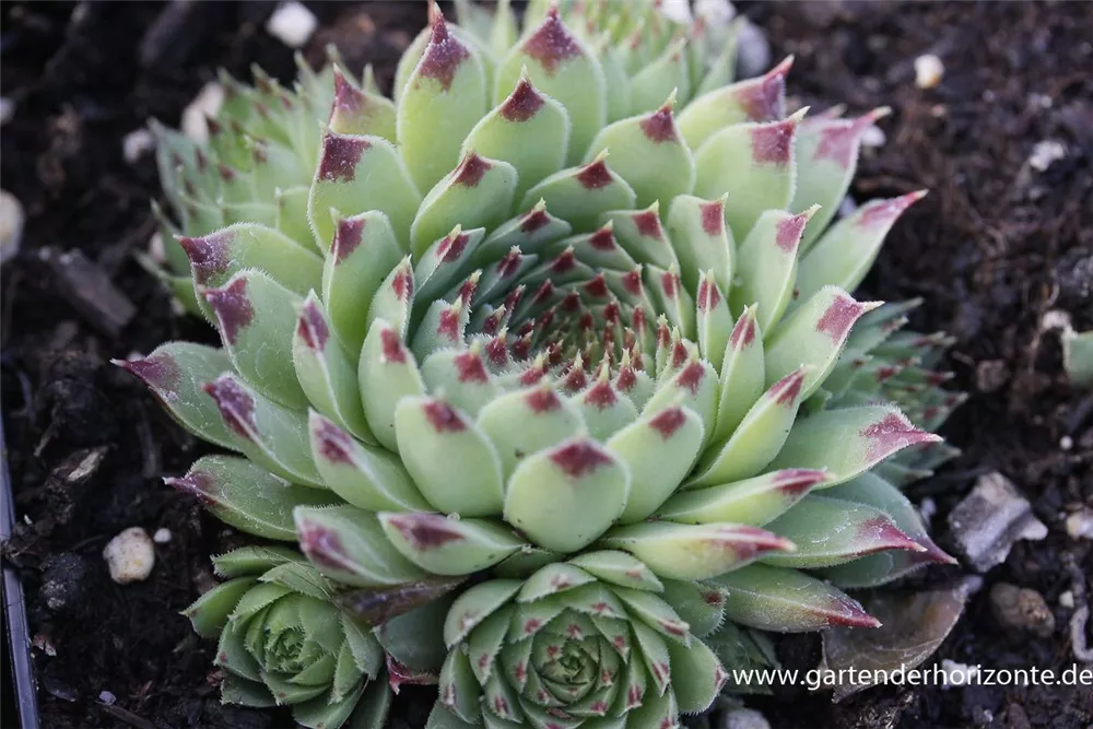 Garten-Hauswurz 'Mrs. Giuseppi' ist auch unter diesem Namen bekannt: Rotspitz-Garten-Steinrose.