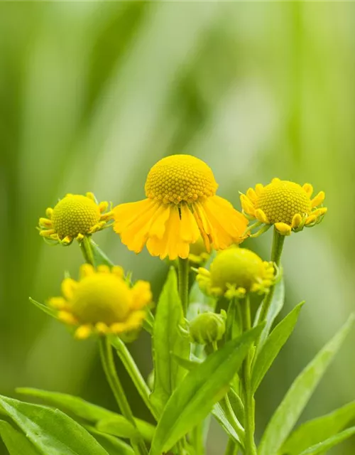 Helenium 'Waltraud' bildet körbchenartige, orange-gelbe Blüten ab Juni.